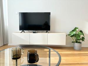 Номер с кондиционером включает одну спальню, гостиную с диваном и рабочим столом, а также ванную комнату с ванной и средствами для мытья тела. Кухонная зона полностью укомплектована духовкой, плитой, холодильником, посудомоечной машиной, электрическим чайником и необходимой кухонной утварью, имеется обеденный стол для удобства гостей.